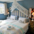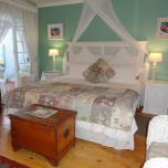 Return from a stroll and refreshing swim in the tidal marine pool and retire in the romantic and spacious Rose Room that accommodates 2 persons in the main bedroom and 2 persons in the adjoining sun room on twin beds. A cosy woodburning fireplace sets the romantic ambience in Winter. Be surrounded by attractive furnishings and fabrics, reminiscent of a gracious era, along with high ceilings, long sash windows and understated luxury.