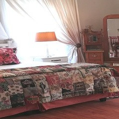 The Rose Room (Double Room) Is ideal for a family of 4 with an inter-leading sun room that sleeps 2 additional persons. This suite is also wheel chair accessible and is suitable for senior citizens as there are no steps. Enjoy the cosy fireplace in winter. Relax on the lovely private and enclosed patio. Pet friendly on request.